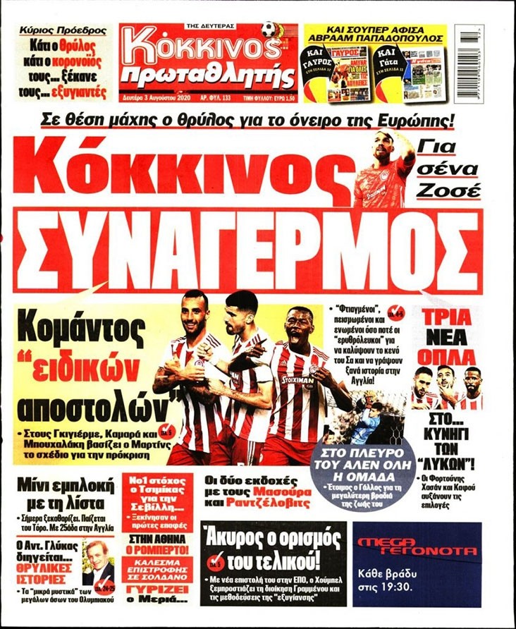Το πρωτοσέλιδο του «Κόκκινου Πρωταθλητή», αλλά και του «ΓΑΥΡΟΥ», μπορείτε να δείτε μέσω του σάιτ μας. Καθημερινά εδώ, πώς κυκλοφορεί η εφημερίδα που καλύπτει όλη την «ερυθρόλευκη» δραστηριότητα.