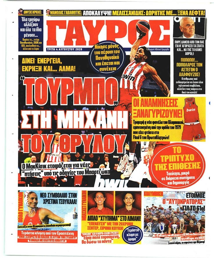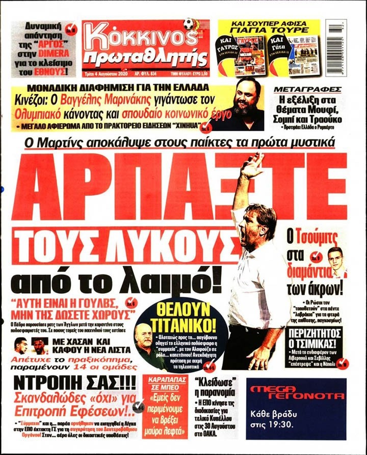 Το πρωτοσέλιδο του Κόκκινου Πρωταθλητή (4/8)