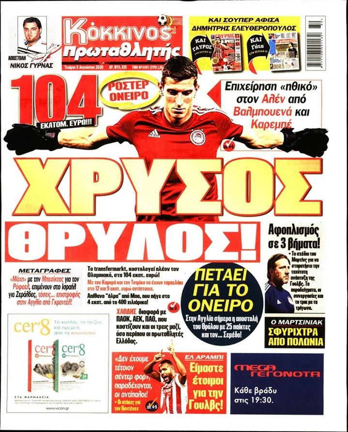 Το πρωτοσέλιδο του Κόκκινου Πρωταθλητή (5/8)