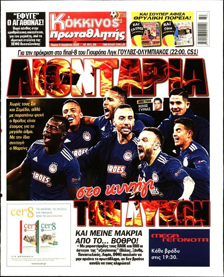 Το πρωτοσέλιδο του Κόκκινου Πρωταθλητή (6/8)