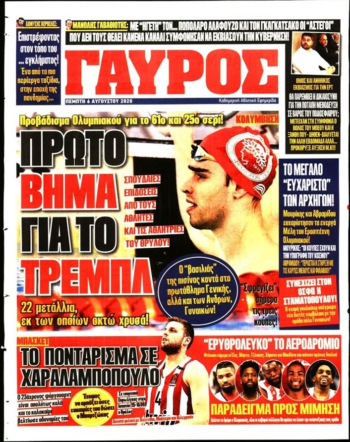 Το πρωτοσέλιδο του «Κόκκινου Πρωταθλητή», αλλά και του «ΓΑΥΡΟΥ», μπορείτε να δείτε μέσω του σάιτ μας. Καθημερινά εδώ, πώς κυκλοφορεί η εφημερίδα που καλύπτει όλη την «ερυθρόλευκη» δραστηριότητα.