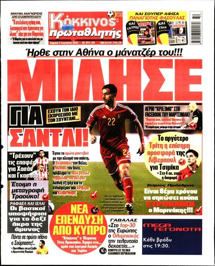 Το πρωτοσέλιδο του Κόκκινου Πρωταθλητή (9/8)