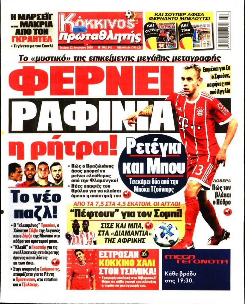 Το πρωτοσέλιδο του Κόκκινου Πρωταθλητή (12/8)