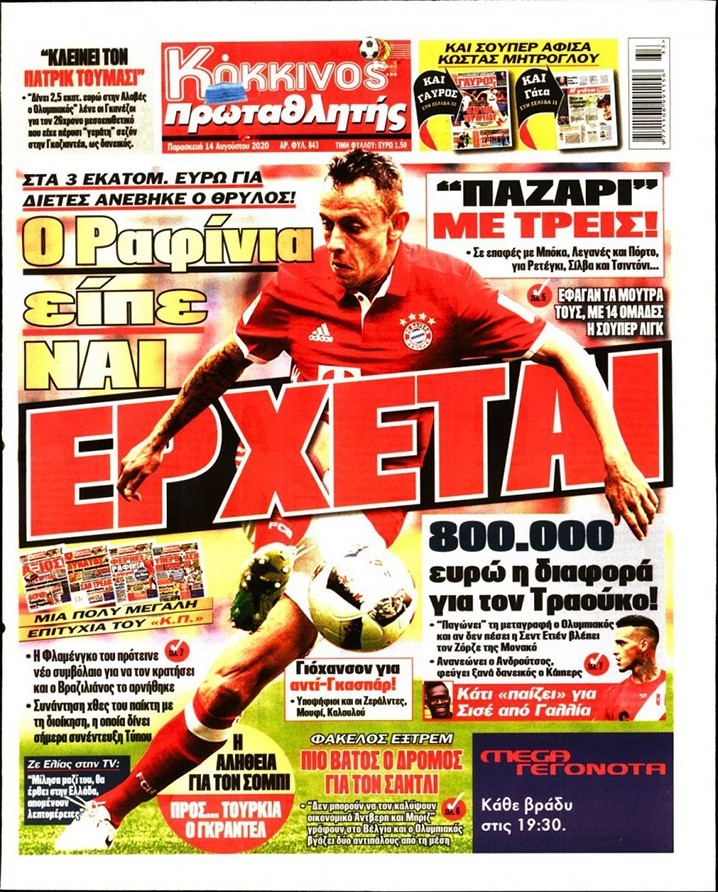 Το πρωτοσέλιδο του Κόκκινου Πρωταθλητή (14/8)