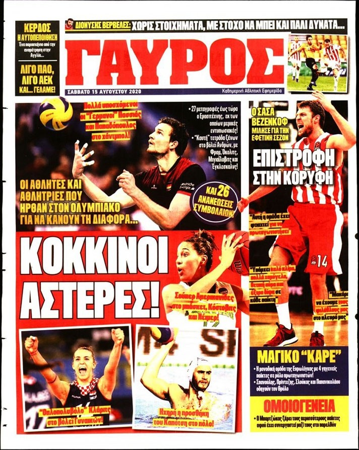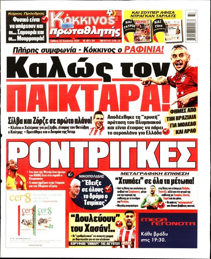 Το πρωτοσέλιδο του Κόκκινου Πρωταθλητή (15/8)
