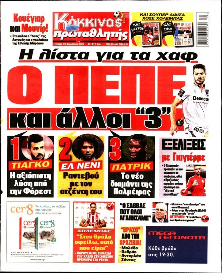 Το πρωτοσέλιδο του Κόκκινου Πρωταθλητή (19/8)