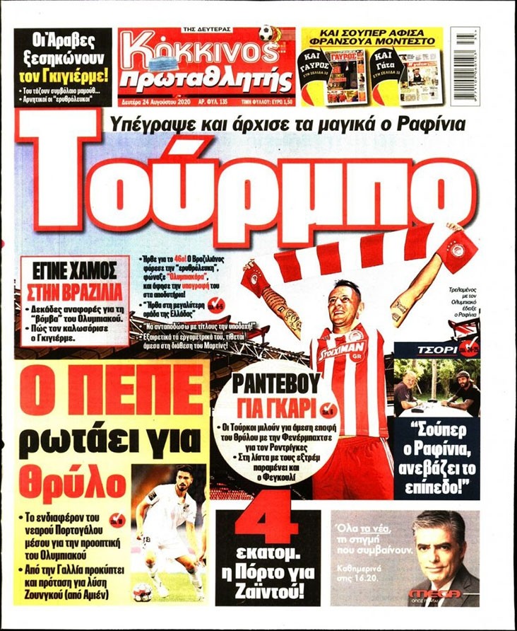 Το πρωτοσέλιδο του Κόκκινου Πρωταθλητή (24/8)