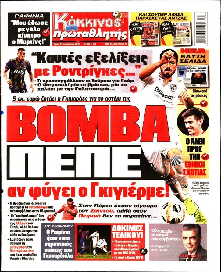 Το πρωτοσέλιδο του Κόκκινου Πρωταθλητή (25/8)