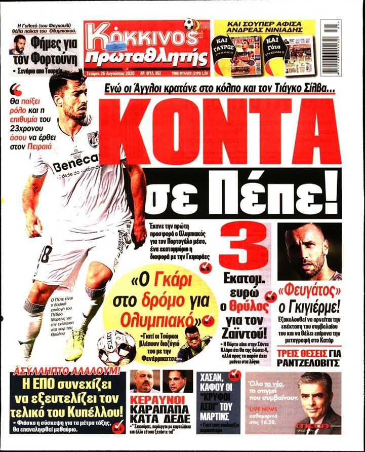 Το πρωτοσέλιδο του Κόκκινου Πρωταθλητή (26/8)