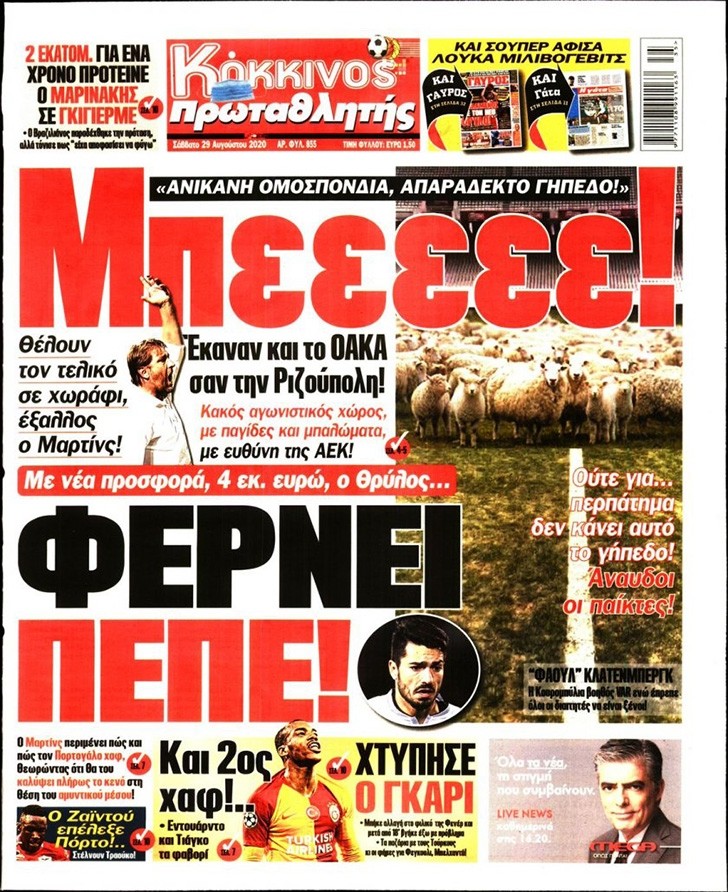 Το πρωτοσέλιδο του Κόκκινου Πρωταθλητή (29/8)