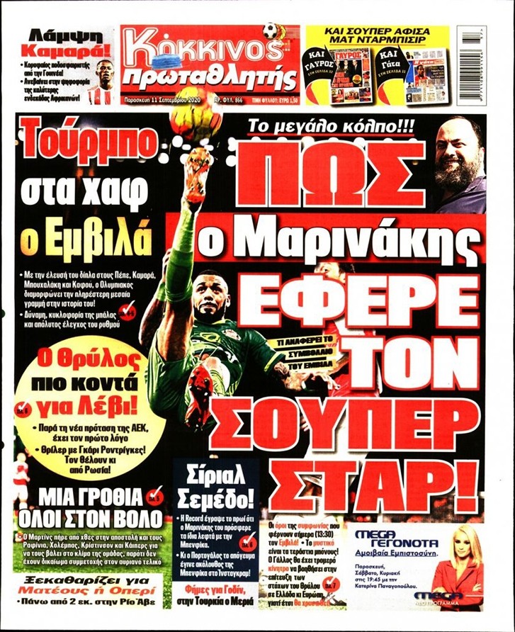Το πρωτοσέλιδο του Κόκκινου Πρωταθλητή (11/9)