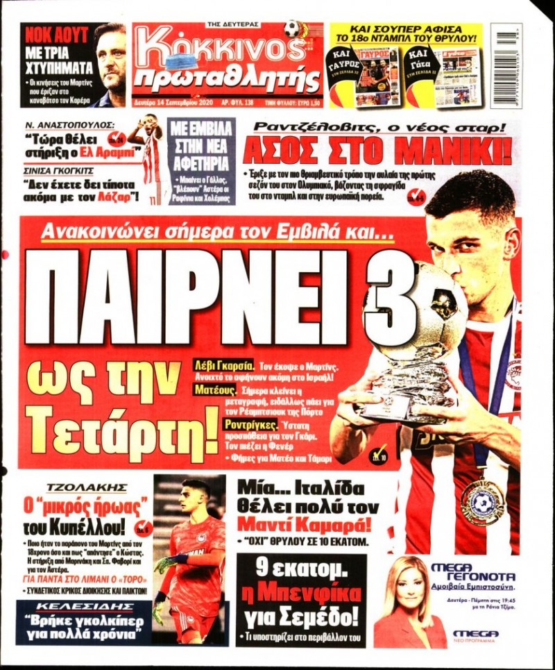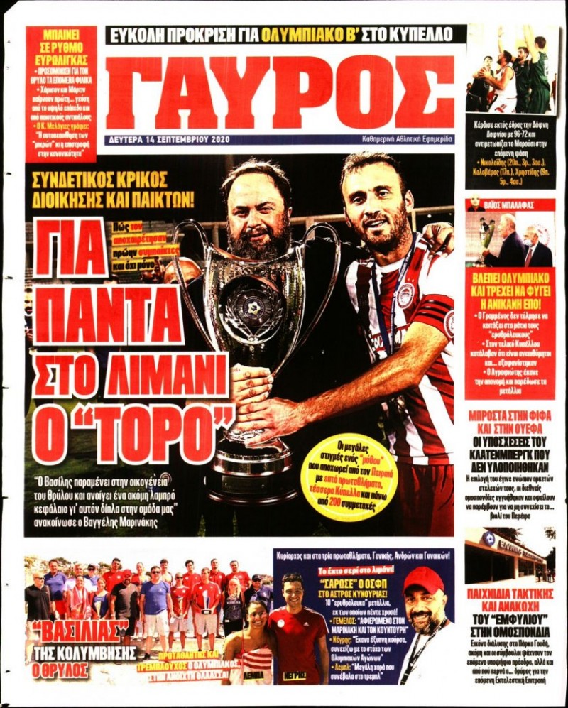 Το πρωτοσέλιδο του «Κόκκινου Πρωταθλητή», αλλά και του «ΓΑΥΡΟΥ», μπορείτε να δείτε μέσω του σάιτ μας. Καθημερινά εδώ, πώς κυκλοφορεί η εφημερίδα που καλύπτει όλη την «ερυθρόλευκη» δραστηριότητα.