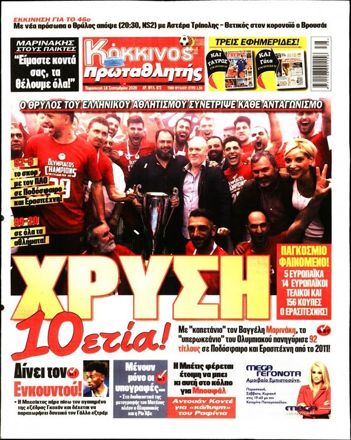 Το πρωτοσέλιδο του Κόκκινου Πρωταθλητή (18/9)