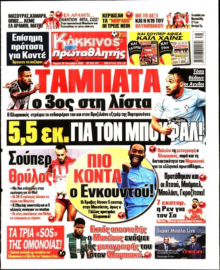 Το πρωτοσέλιδο του Κόκκινου Πρωταθλητή (20/9)