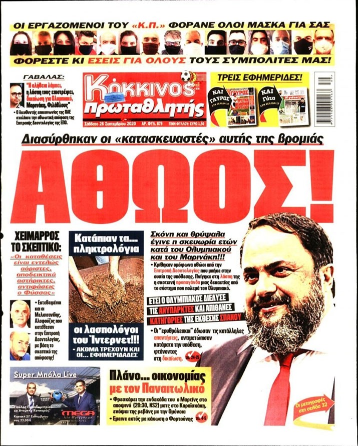 Το πρωτοσέλιδο του Κόκκινου Πρωταθλητή (26/9)
