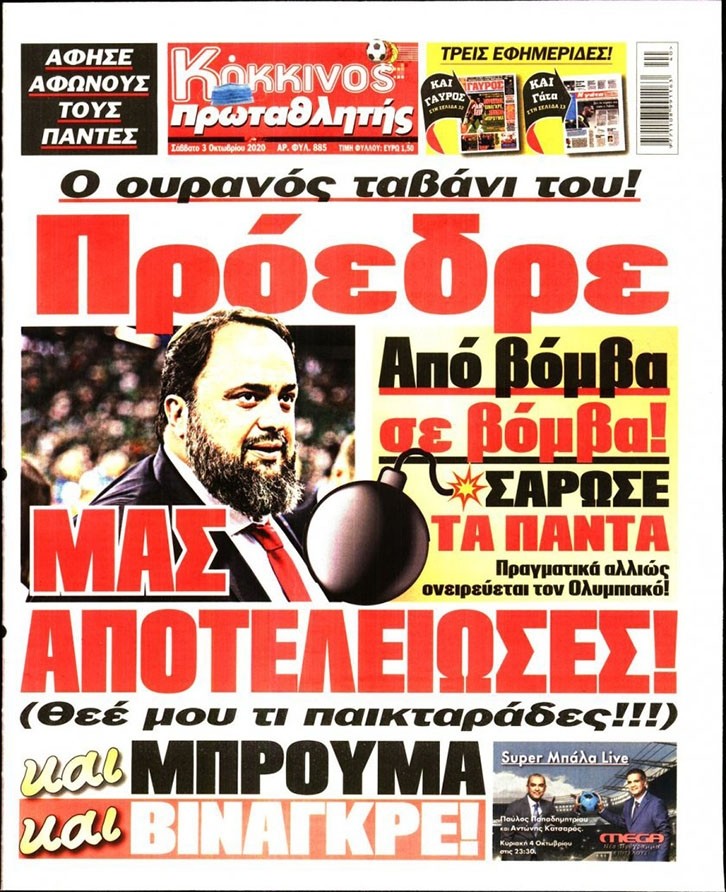 Το πρωτοσέλιδο του Κόκκινου Πρωταθλητή (3/10)