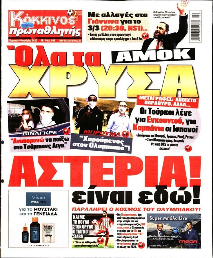 Το πρωτοσέλιδο του Κόκκινου Πρωταθλητή (4/10)