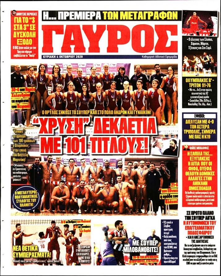 Το πρωτοσέλιδο του «Κόκκινου Πρωταθλητή», αλλά και του «ΓΑΥΡΟΥ», μπορείτε να δείτε μέσω του σάιτ μας. Καθημερινά εδώ, πώς κυκλοφορεί η εφημερίδα που καλύπτει όλη την «ερυθρόλευκη» δραστηριότητα.