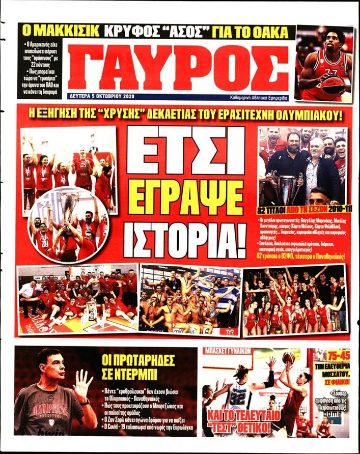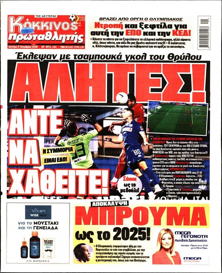 Το πρωτοσέλιδο του Κόκκινου Πρωταθλητή (5/10)