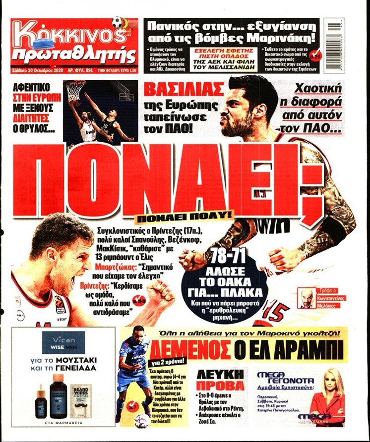 Το πρωτοσέλιδο του Κόκκινου Πρωταθλητή (10/10)