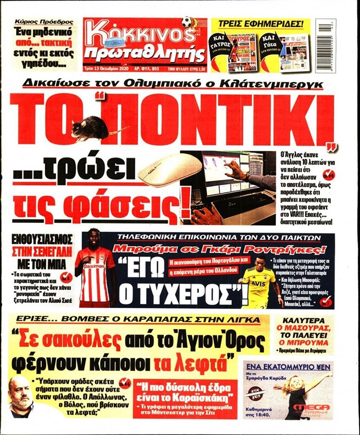 Το πρωτοσέλιδο του «Κόκκινου Πρωταθλητή», αλλά και του «ΓΑΥΡΟΥ», μπορείτε να δείτε μέσω του σάιτ μας. Καθημερινά εδώ, πώς κυκλοφορεί η εφημερίδα που καλύπτει όλη την «ερυθρόλευκη» δραστηριότητα.