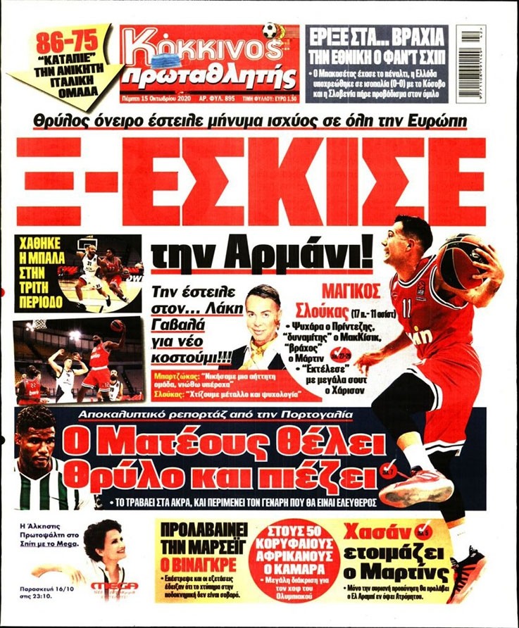 Το πρωτοσέλιδο του Κόκκινου Πρωταθλητή (15/10)
