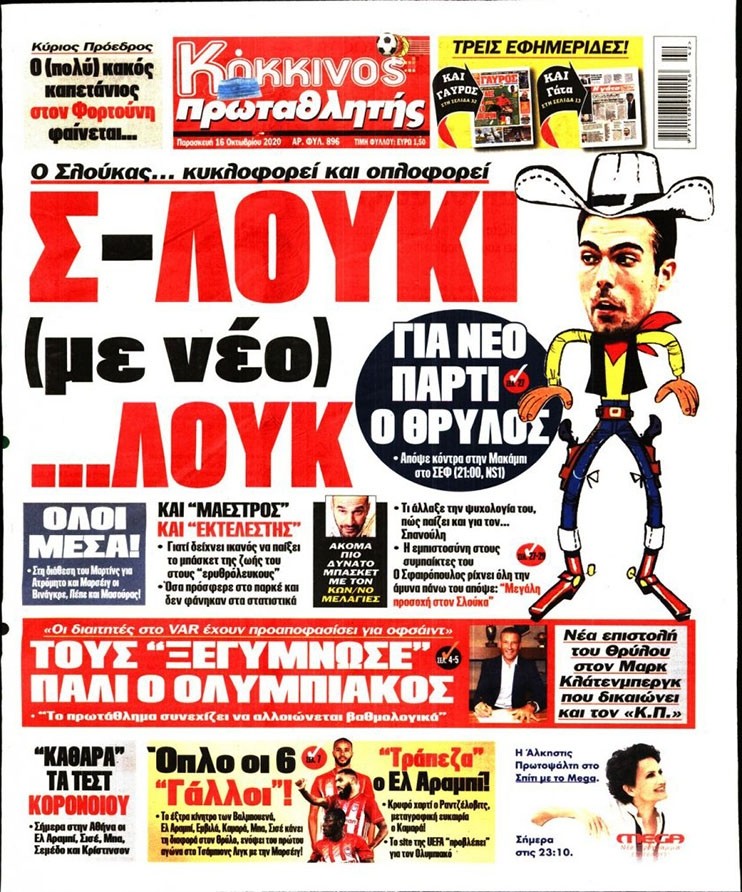 Το πρωτοσέλιδο του Κόκκινου Πρωταθλητή (16/10)