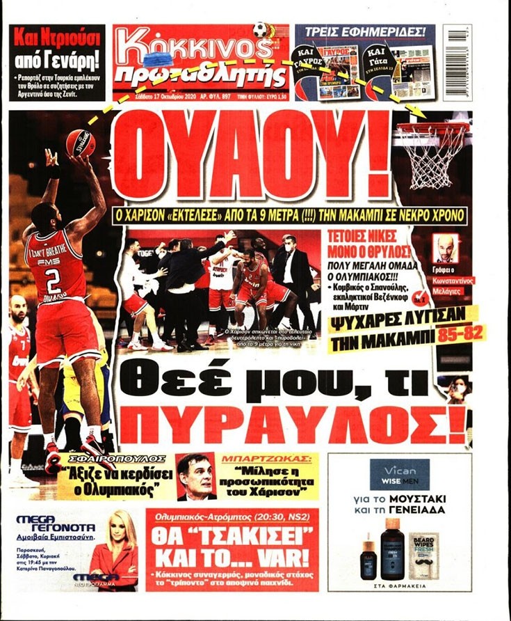 Το πρωτοσέλιδο του Κόκκινου Πρωταθλητή (17/10)