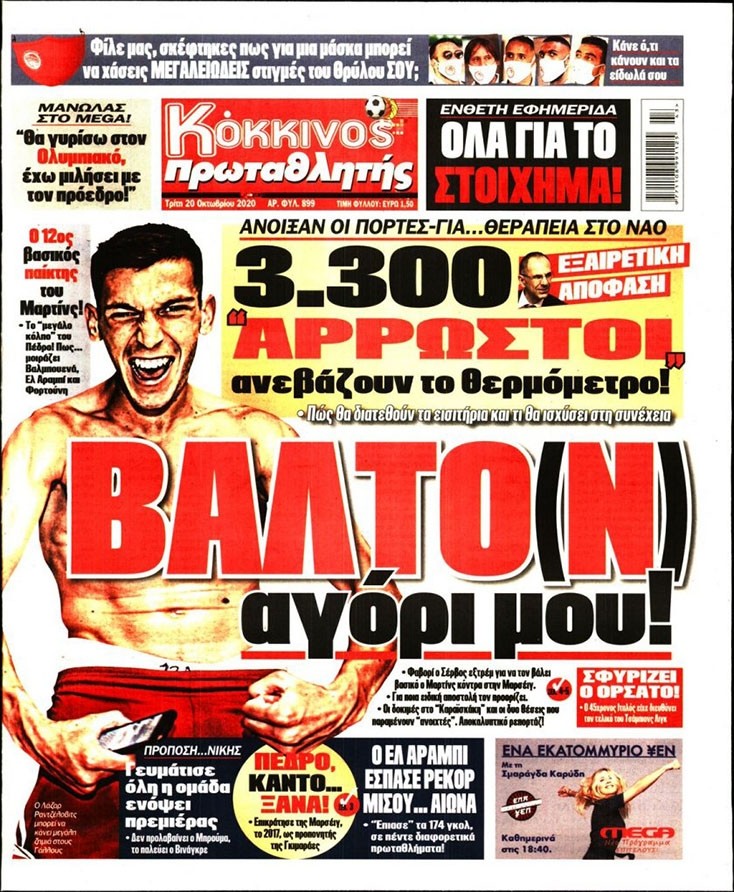 Το πρωτοσέλιδο του Κόκκινου Πρωταθλητή (20/10)