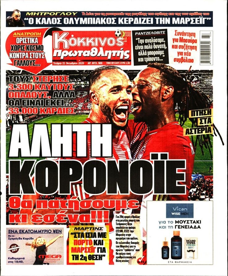Το πρωτοσέλιδο του Κόκκινου Πρωταθλητή (21/10)