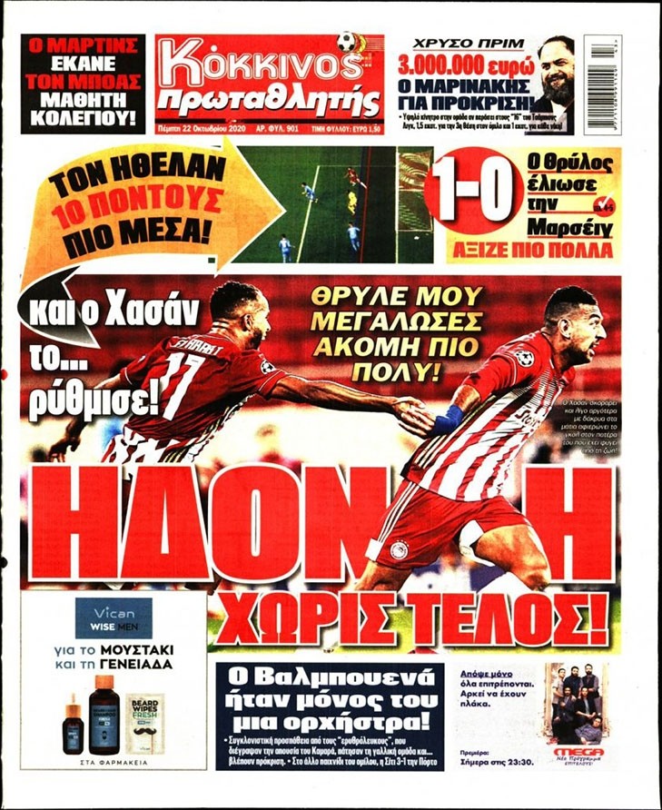 Το πρωτοσέλιδο του Κόκκινου Πρωταθλητή (22/10)