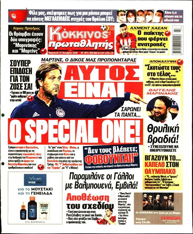 Το πρωτοσέλιδο του Κόκκινου Πρωταθλητή (23/10)