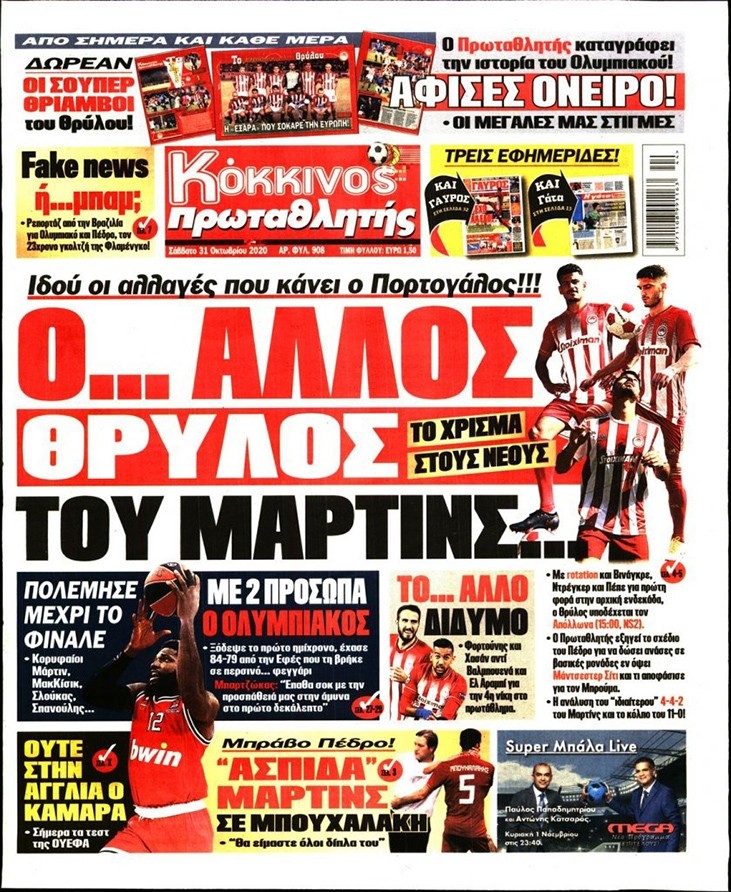 Το πρωτοσέλιδο του Κόκκινου Πρωταθλητή (31/10)