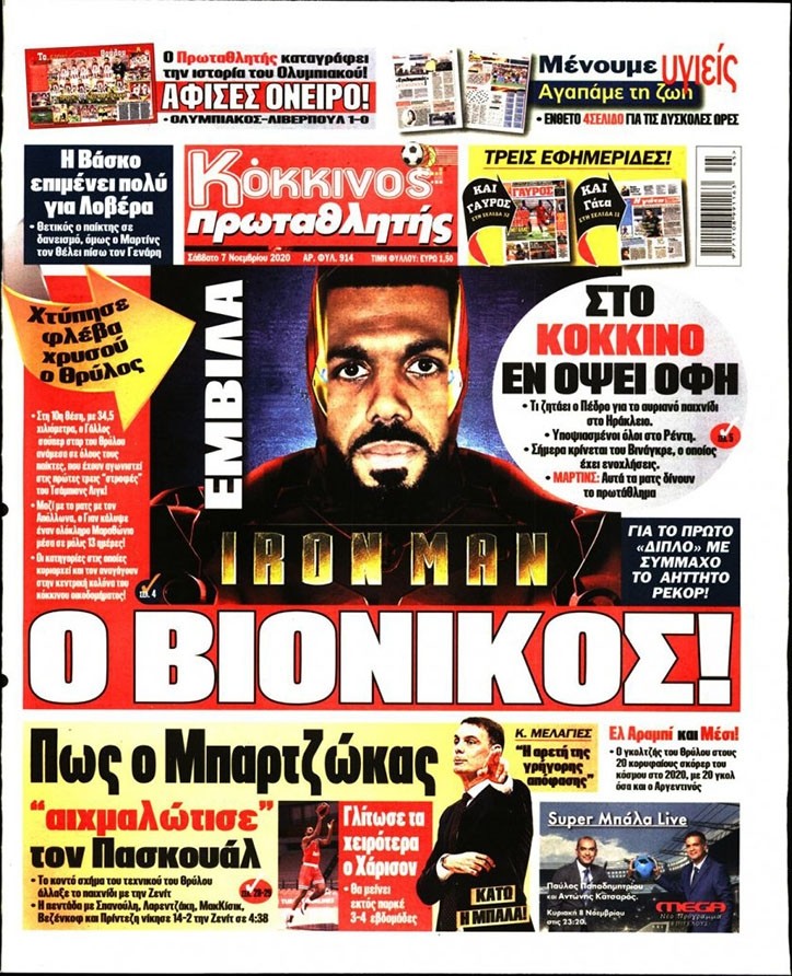 Το πρωτοσέλιδο του Κόκκινου Πρωταθλητή (7/11)