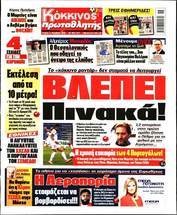 Το πρωτοσέλιδο του Κόκκινου Πρωταθλητή (11/11)