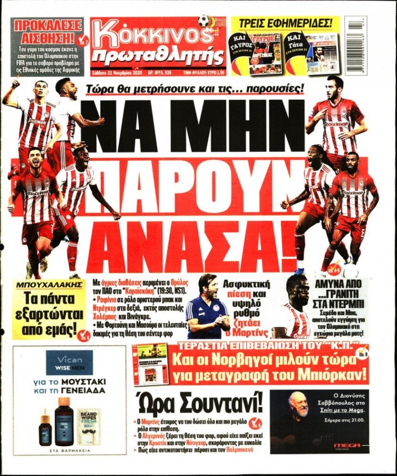 Το πρωτοσέλιδο του «Κόκκινου Πρωταθλητή», αλλά και του «ΓΑΥΡΟΥ», μπορείτε να δείτε μέσω του σάιτ μας. Καθημερινά εδώ, πώς κυκλοφορεί η εφημερίδα που καλύπτει όλη την «ερυθρόλευκη» δραστηριότητα.