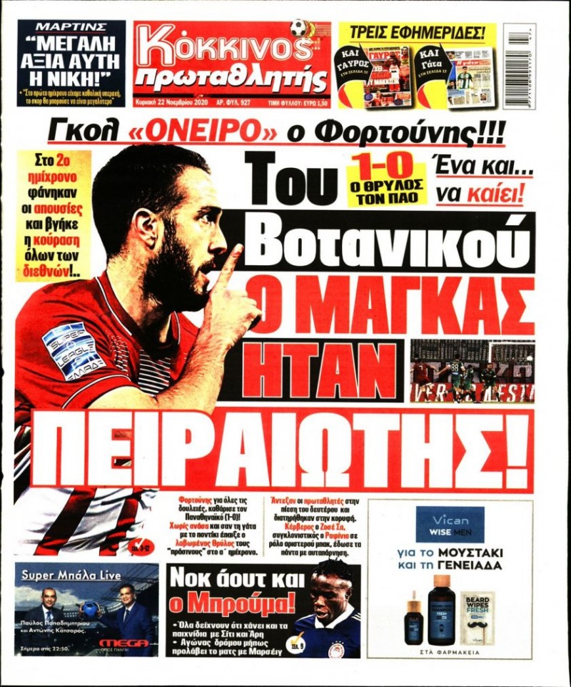 Το πρωτοσέλιδο του Κόκκινου Πρωταθλητή (22/11)