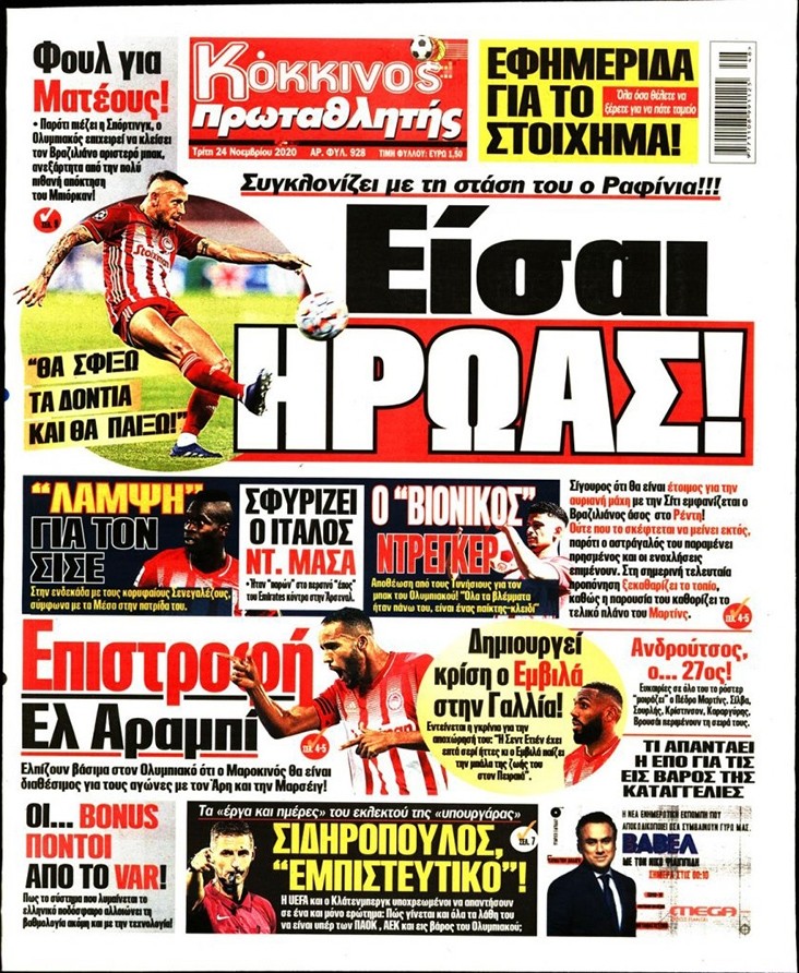 Το πρωτοσέλιδο του Κόκκινου Πρωταθλητή (24/11)