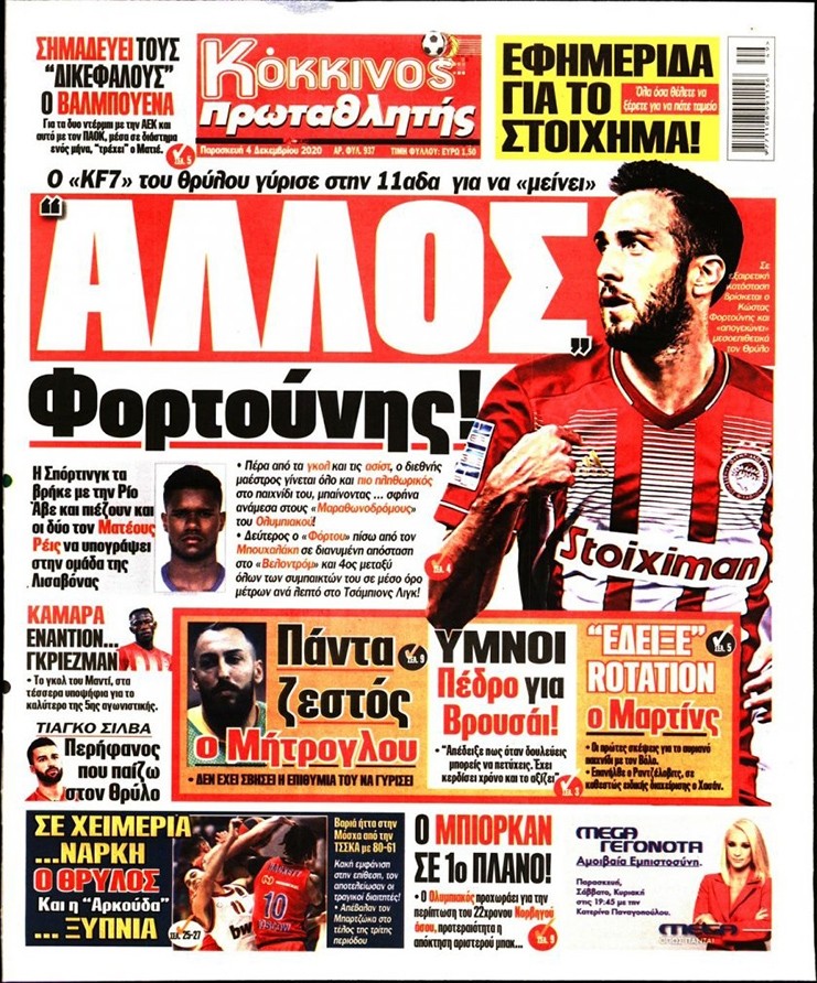 Το πρωτοσέλιδο του Κόκκινου Πρωταθλητή (4/12)