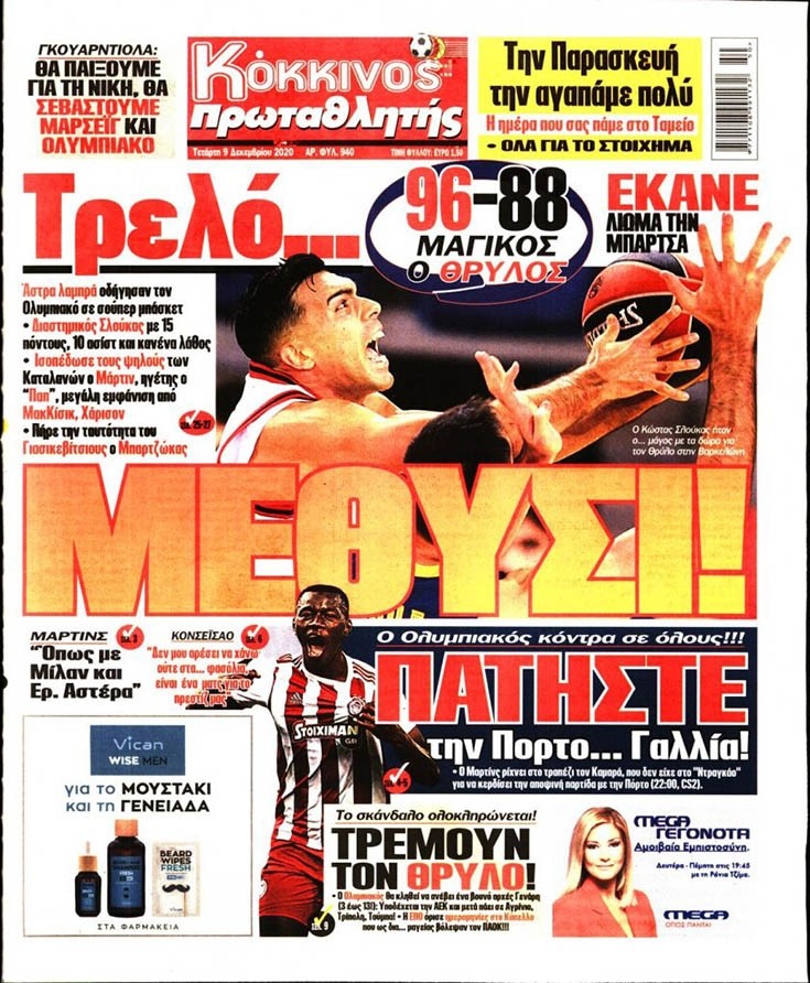 Το πρωτοσέλιδο του Κόκκινου Πρωταθλητή (9/12)
