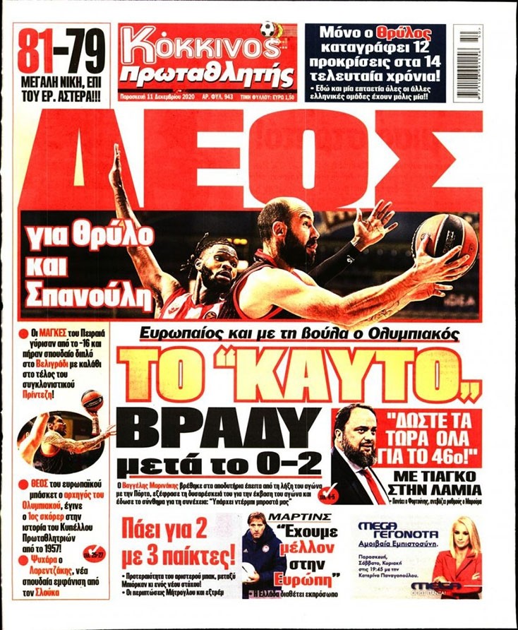 Το πρωτοσέλιδο του Κόκκινου Πρωταθλητή (11/12)