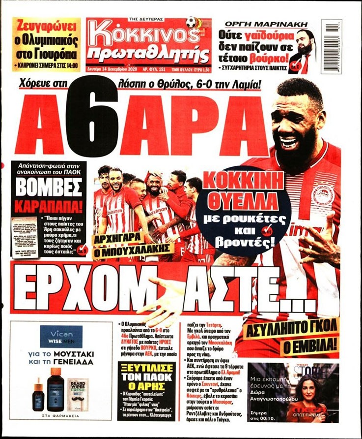 Το πρωτοσέλιδο του Κόκκινου Πρωταθλητή (14/12)