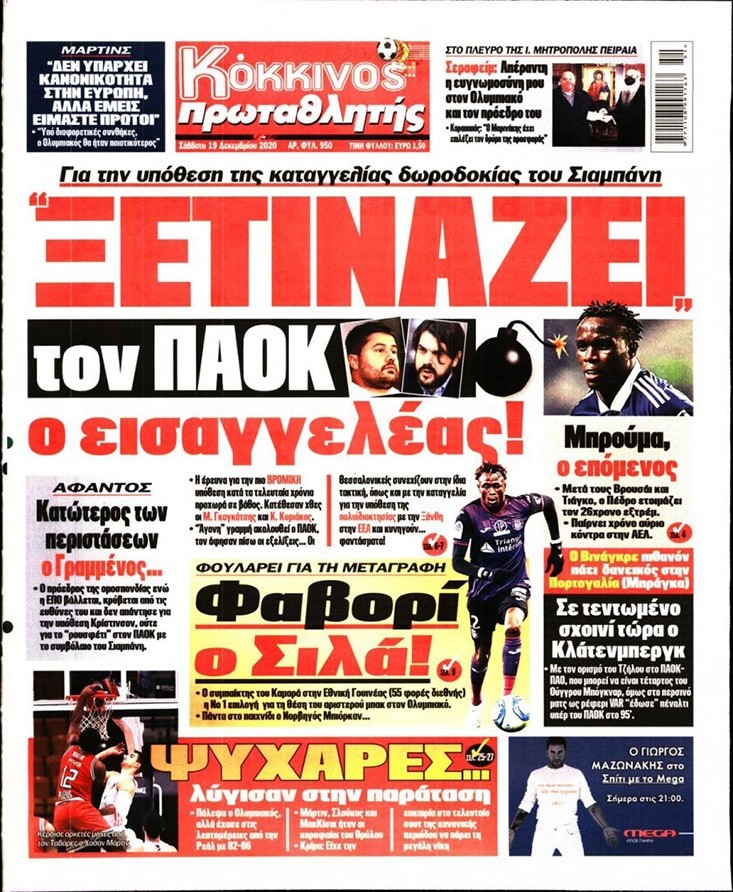 Το πρωτοσέλιδο του Κόκκινου Πρωταθλητή (19/12)