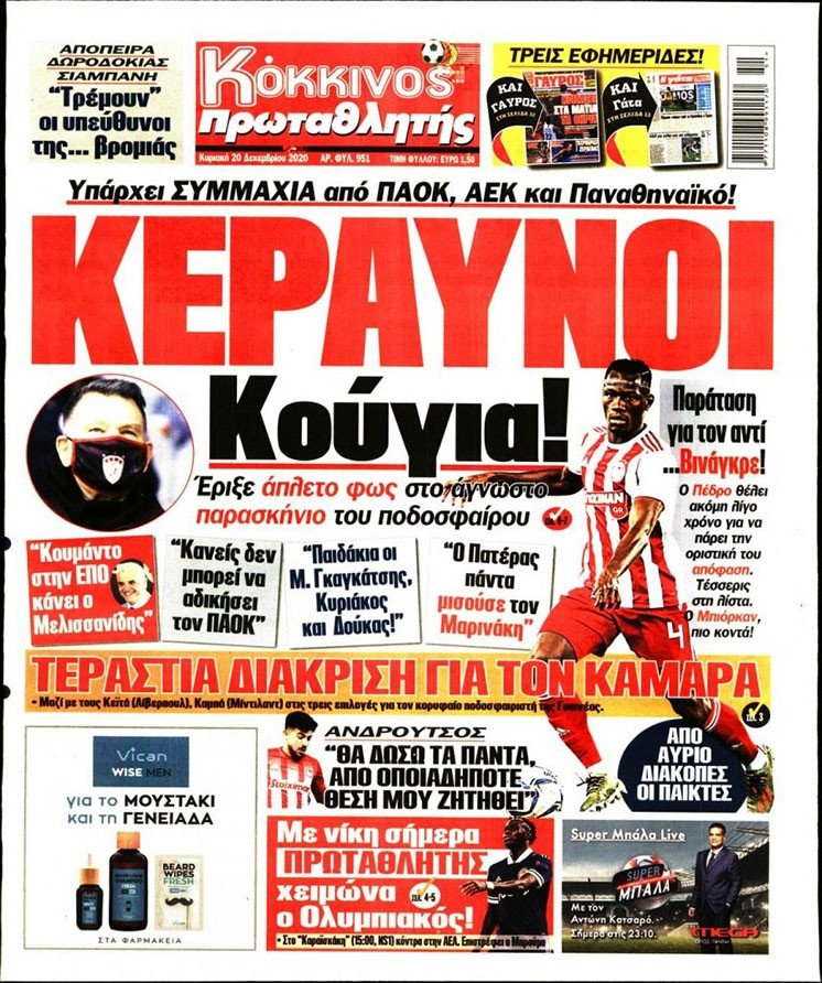 Το πρωτοσέλιδο του Κόκκινου Πρωταθλητή (20/12)