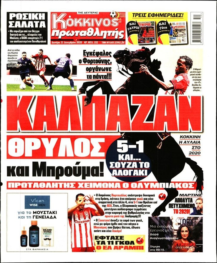 Το πρωτοσέλιδο του Κόκκινου Πρωταθλητή (21/12)