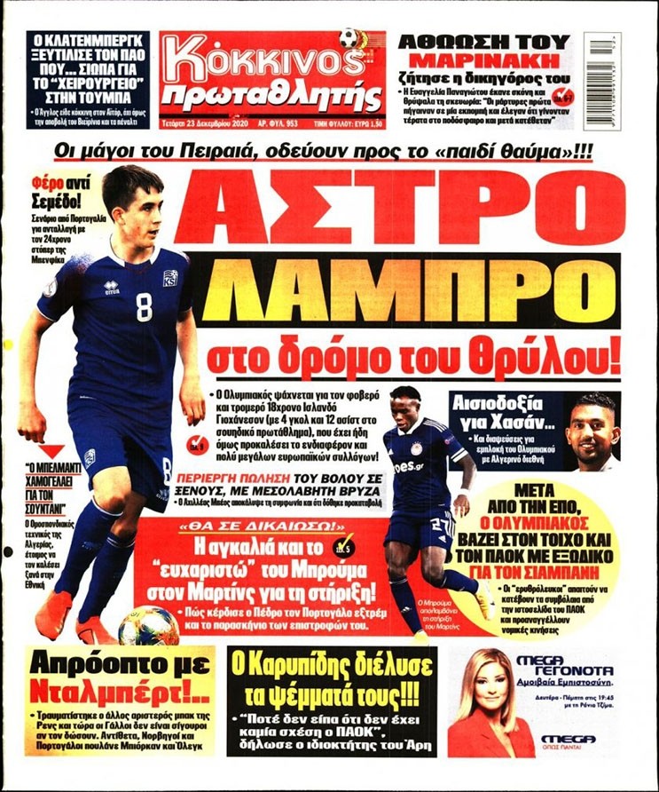 Το πρωτοσέλιδο του Κόκκινου Πρωταθλητή (23/12)