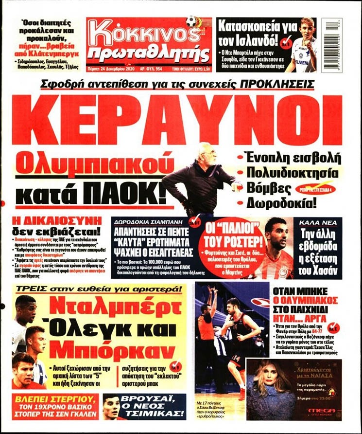 Το πρωτοσέλιδο του Κόκκινου Πρωταθλητή (24/12)