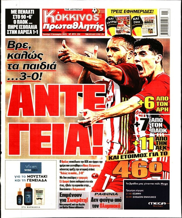 Το πρωτοσέλιδο του Κόκκινου Πρωταθλητή (4/1)