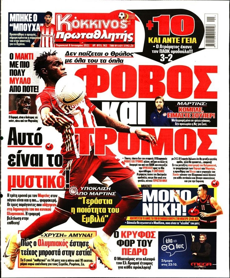 Το πρωτοσέλιδο του Κόκκινου Πρωταθλητή (8/1)