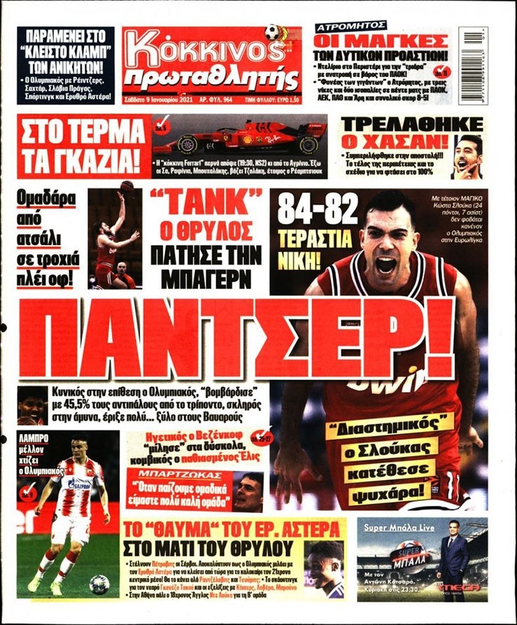 Το πρωτοσέλιδο του Κόκκινου Πρωταθλητή (9/1)